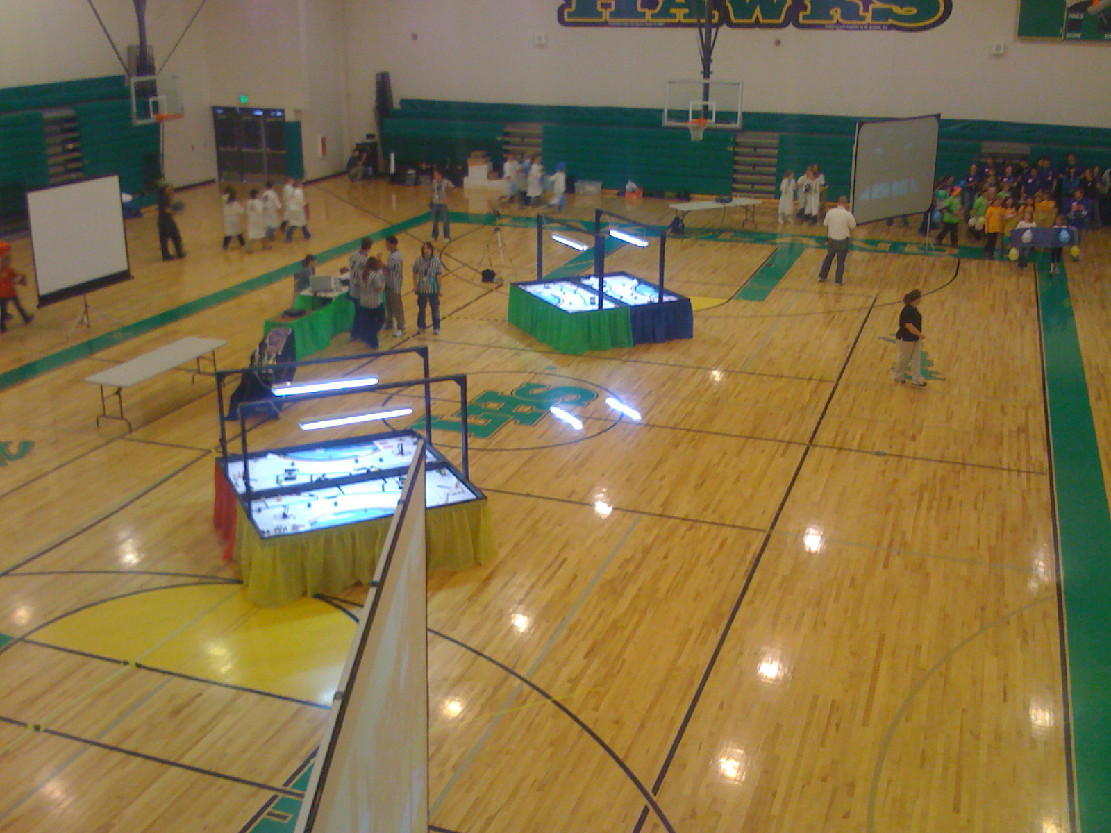 There are four arenas where the bots battle. The school’s other gym served as the pit area. Each of the 41 teams did three battles, which took all afternoon.