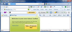 Figure 1 illustrates an Internet Explorer window with three add-on toolbars displayed. Top-to-bottom they are Google, Windows Live, and Yahoo. Ugh.