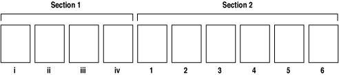 The process works like this: You create a document and then split it into two sections, as shown in Figure 1. The first section features a page numbering style using Roman Numerals. The second section changes the style back to standard numbering, but also restarts page numbering at page one.