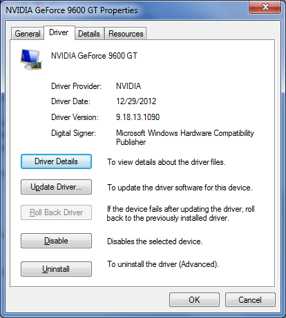 The Properties dialog box for my PC’s graphics adapter. The Roll Back button is dimmed because I’ve just used it.
