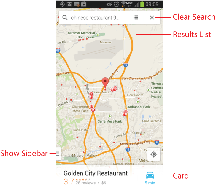 3. Touch the search results card. On a cell phone, you can swipe the card up so that it fills the entire screen, as shown in Figure 2.