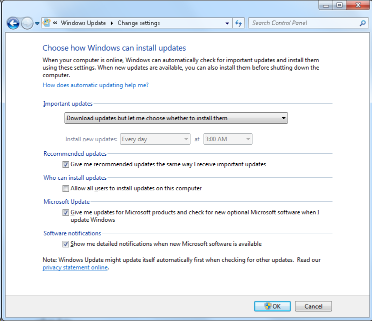 - Under the Important Updates heading, choose the option Download Updates But Let Me Choose Whether to Install Them.
